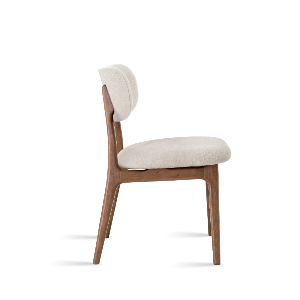Minimalista e versátil, a Cadeira Claudia une madeira maciça e design leve, oferecendo conforto e elegância para compor diferentes ambientes.