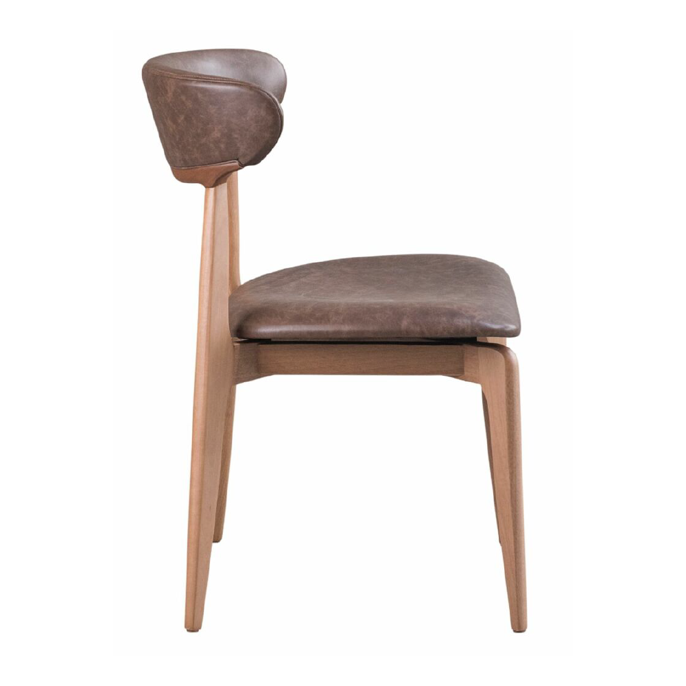 Estrutura e encosto em madeira maciça de eucalipto. Assento em MDF ergonômico estofado com espuma de boa densidade e revestida com tecido.